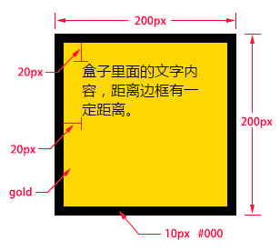 width:200px; /* 设置盒子的宽度,此宽度是指盒子内容的宽度,不是盒子整体宽度(难点) */
