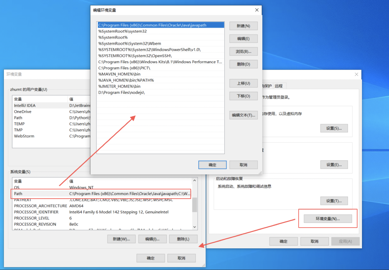 • 修改系统变量PATH