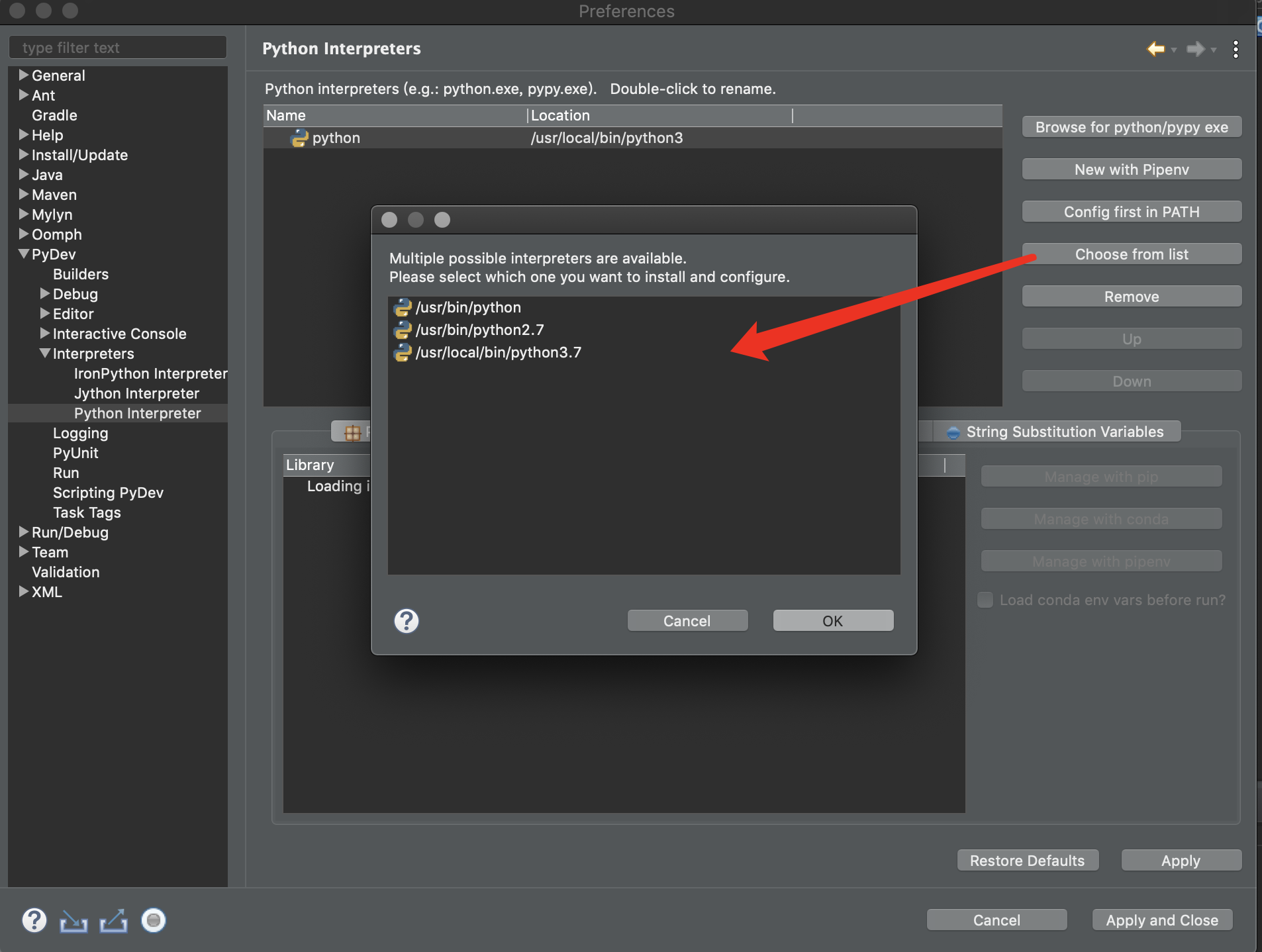 点击从列表中选择,这里是在电脑系统中查找环境变量。